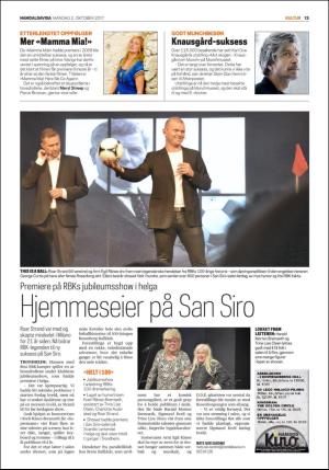 Det som ikke fungerte helt 100 var balansegangen mellom Rosenborg-markeringen og rollefigurene til Harald Morten Bremseth og Sigmund Kveli fra tidligere årganger av showet. Der Kveli Rånes Bremseth tidligere har sjarmert publikum trill rundt, slet de nå med å nå helt fram. Bremseths Brein-figurer fungerte i og for seg på samme måte som før, men personlig savnet jeg mer av den elleville Kveligalskapen som Sigmund Kveli besitter så til de grader til fingerspissene.