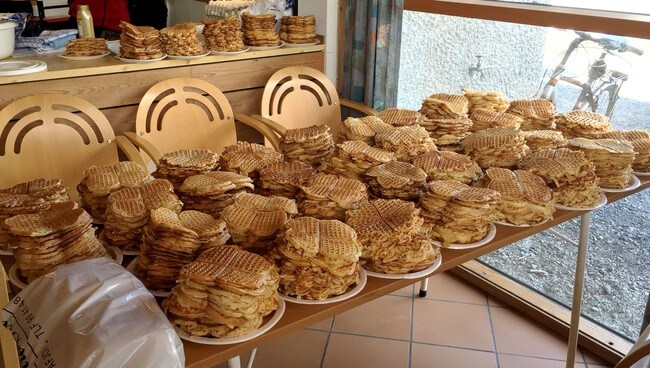 Her har de altså også laget vafler (i alle fall mange av dem) med fjøsfersk melk. Det er virkelig greier.