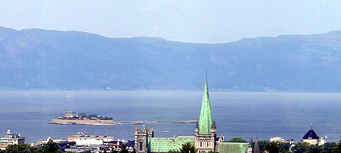 Utsikt mot Munkholmen og Nidarosdomen i nord.