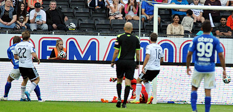 Riski skjøt, og Søderlund scoret nesten på retur fra Håkon Opdal.