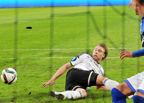 Søderlund dempet fint, men sklei på den første sjansen før pause.