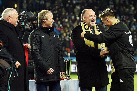Premieseremonien og festen på bryggeriet ble triveligere enn vorspielet med nordlendinger på besøk. Se bildene fra 1-1-kampen mot Bodø/Glimt og feiringa av den første av forhåpentligvis to pokaler på ei uke!