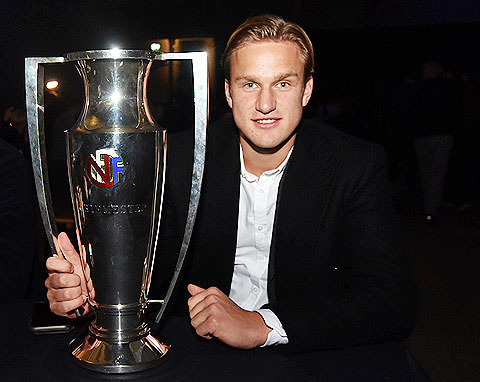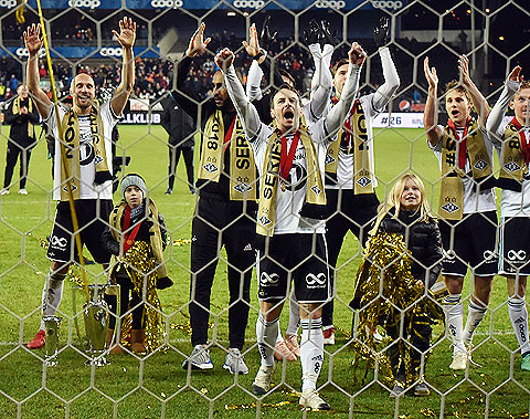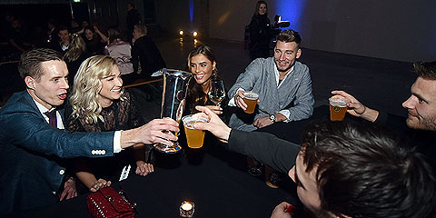 Konradsen tok en skål med seriemesterpokalen før D.D.E. gikk på scenen.