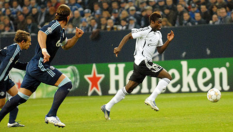 I duell med Strand styrte Asamoah inn 1-0 over hodet på Hirschfeld.