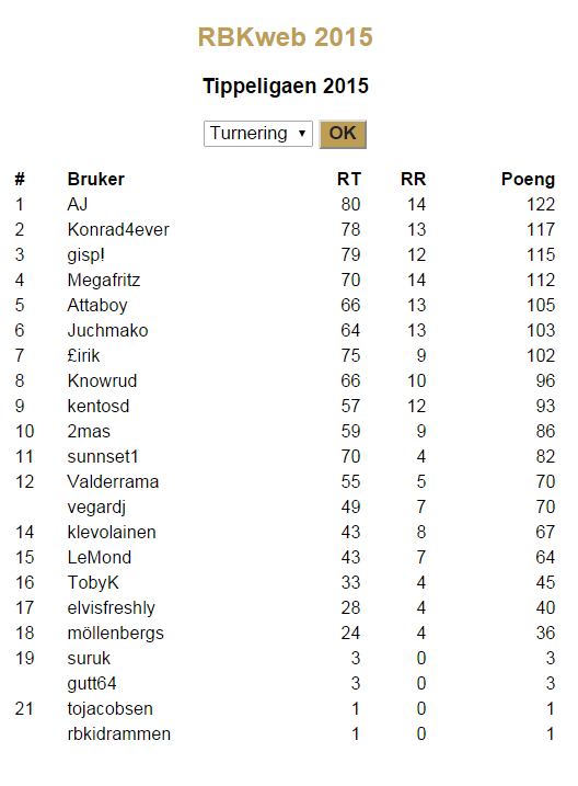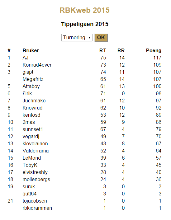 | RBK.no wrote: | | Vi har nå åpnet for registrering til sesongen 2015, og vil dele ut premie fra RBK Shop til den beste tipperen hver eneste runde! I tillegg vil sesongvinneren vinne en Rosenborg-drakt signert av ønsket spiller eller hele laget. |