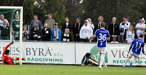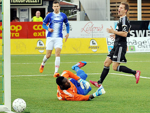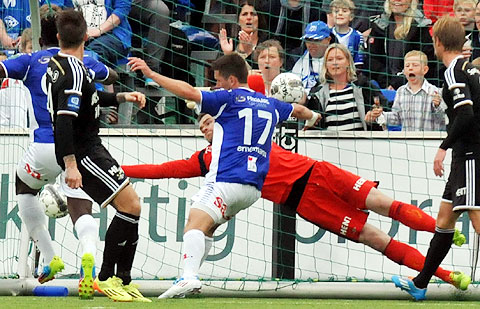 Mikkelsen traff dårlig, og skuddet ble enkelt reddet på streken.