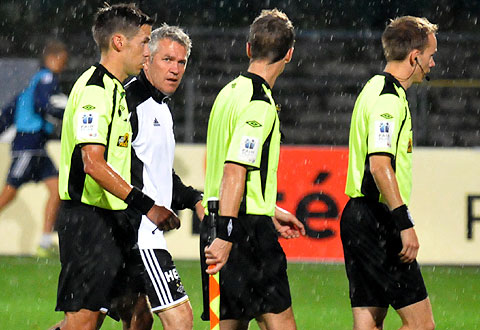 - Vi har store avstander mellom leddene og mellom spillerne. Vi kommer ikke opp i ballfører. Det holder ikke.