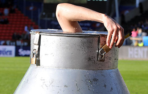 Christian Wedøy ble innesperret i melkespann fylt av vann ...