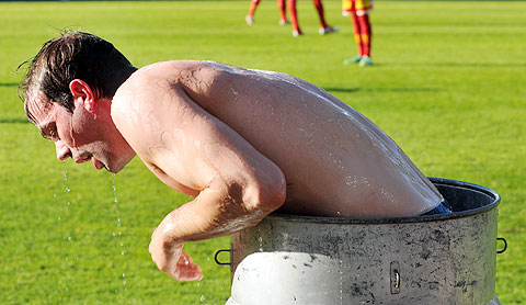 ... og kom seg ut slik at spillerne kunne begynne 2. omgang.