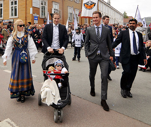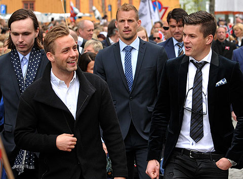 Rosenborg-spillerne vandret gjennom Midtbyen på grunnlovsdagen.