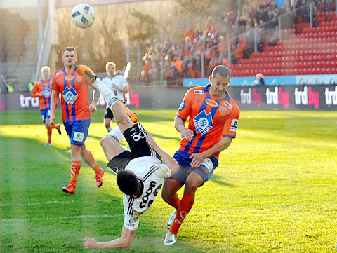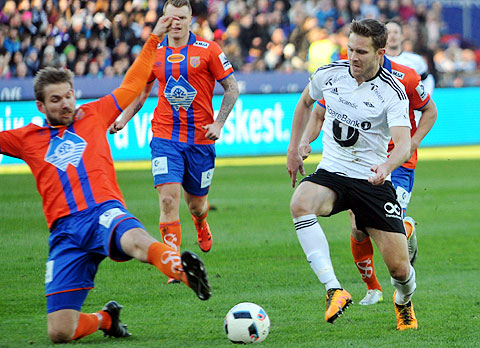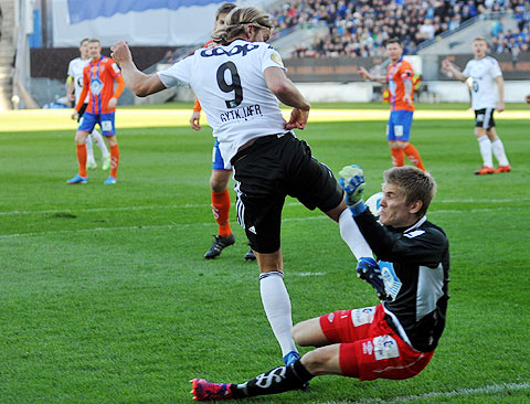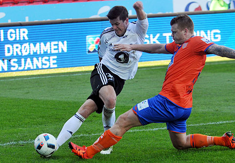 Gytkjær var hårfint offside da han havnet i duell med Andreas Lie ...