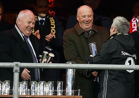 Hyggelig gjensyn med Svendsen og kong Harald, som begge har blitt vante med å dele ut sølvtøy til Rosenborg.