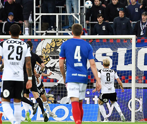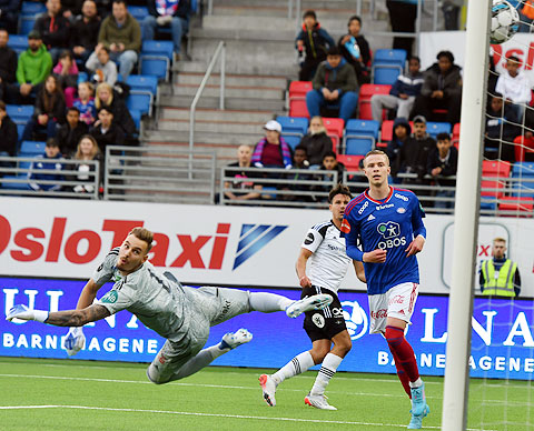 ... Henriksen reddet skuddet fra Aron Dønnum på streken.