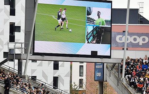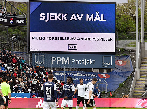 Holm feiret to ganger fordi Reitan først ble dømt offside. Videodommeren omgjorde avgjørelsen.
