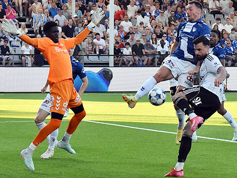 Fem minutter på overtid skjøt Islamovic innunder en hoppende Mamour Ndiaye, men Harald Nilsen Tangen klarerte på streken.