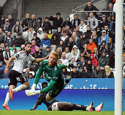 I stedet for å klarere, la Vetle Skjærvik (4) innlegget fra Reitan-Sunde til rette for Islamovic (delvis skjult), som kontrollert scoret igjen etter pause!