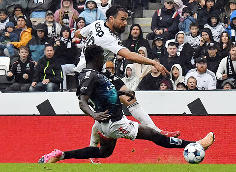 Så skjøt Islamovic via baksida av leggen til Abubacarr Kinteh ...