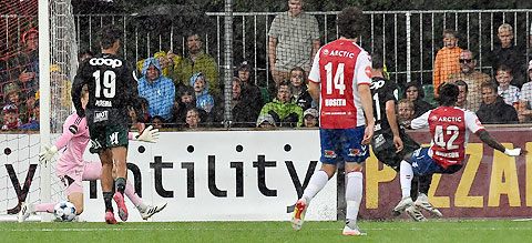 Hjemmelaget kontret da nettopp Emil Ceide ble for ubesluttsom og ikke fikk skutt. David Hickson scoret med tunnel på Nemcik.
