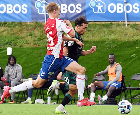 Etter pause fikk Reitan-Sunde straffespark i løpeduell med Mathias Tønnesen.