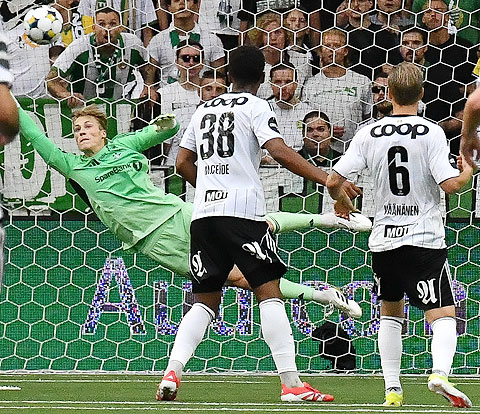 Innlegg fra Hampus Skoglund traff tverrligger.