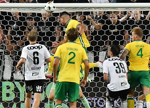 Ni minutter på overtid steg Jusef Erabi til værs, men headinga gikk heldigvis over.