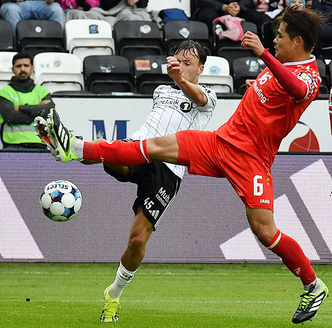 ... videodommeren overbeviste Oleksii Derevinskyi om å gi Reitan-Sunde straffespark i duellen med Kaishu Sano.