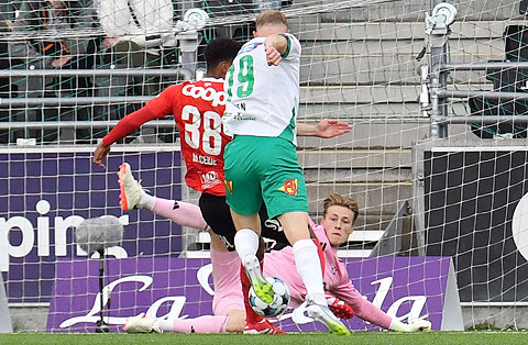 HamKam tok ledelsen etter bare fem minutter: Erlend Reitan og Mikkel Ceide lot Kristian Lien få altfor mye tid og rom til å ta ned ballen og dra seg forbi Sander Tangvik.