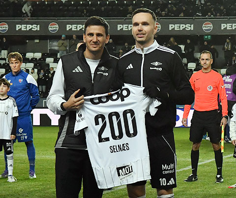 Berdal gratulerte Selnæs med 200 kamper for Rosenborg.