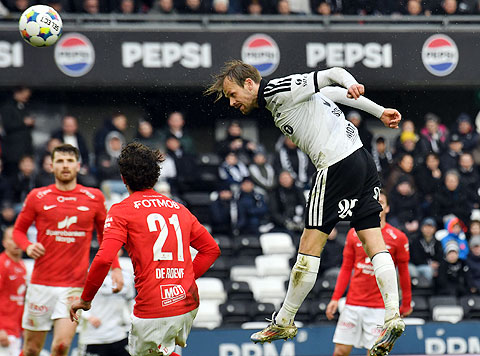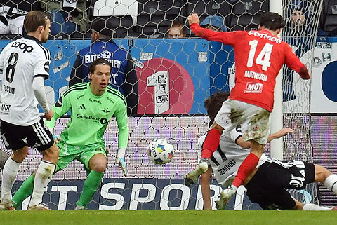 Rett før pause var Fossum helt alene på innlegg fra Mortensen, men headinga var altfor dårlig.
