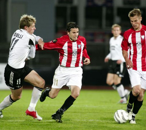 Solli prøver å hamle opp med Yksel Osmanovski og Markus Rosenberg.