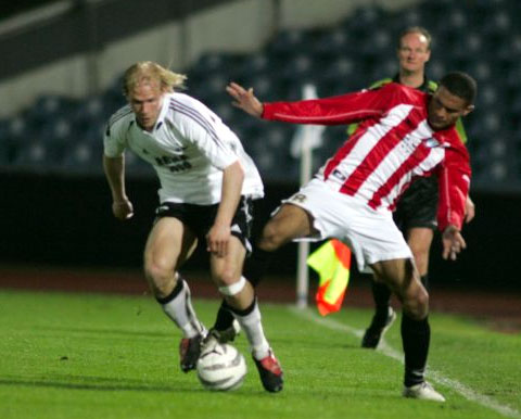 Dorsin spilte brukbart på høyreback. Her i duell med Afonso.