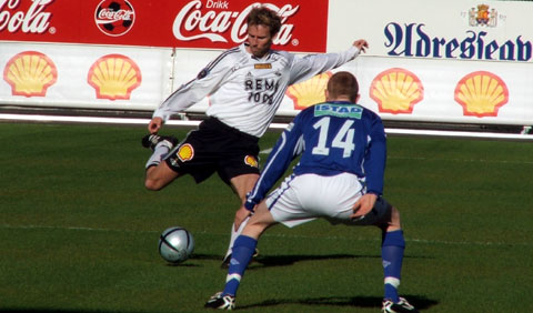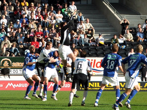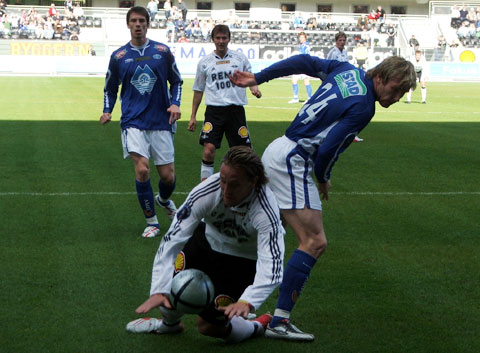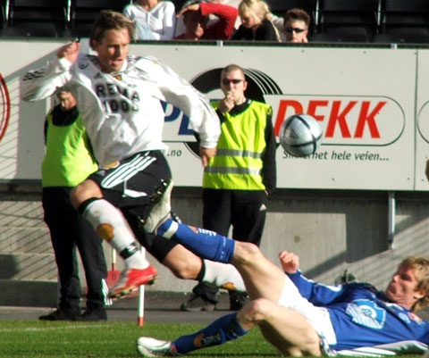Helstad og Mavric i nok en duell. Ikke frispark denne gang heller.