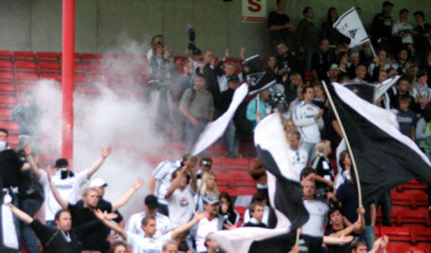 reglementet for bruk av storskjerm under hjemmekampen mot Aalesund. Utligningsmålet til Adin Brown ble vist flere ganger i reprise sjøl om omdiskuterte hendelser bare får vises én gang.