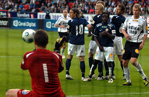Prica med hardt frispark rett på Lars Ivar Moldskred.